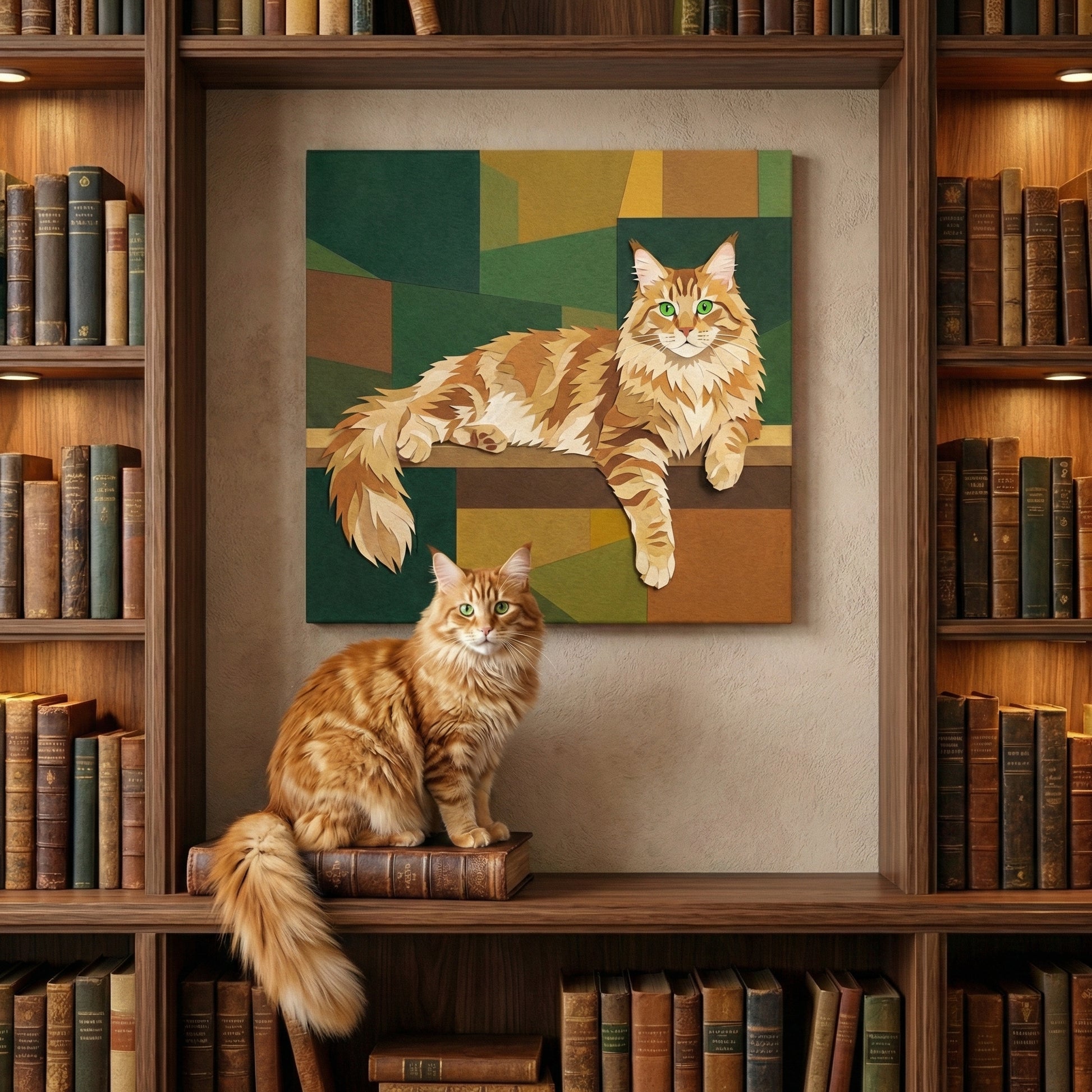 This canvas presents your cat through bold geometric shapes and balanced color blocks, creating a modern, gallery-style look that feels structured and calm. The simplified forms and warm tones give the artwork a refined, architectural presence while keeping your cat instantly recognizable.